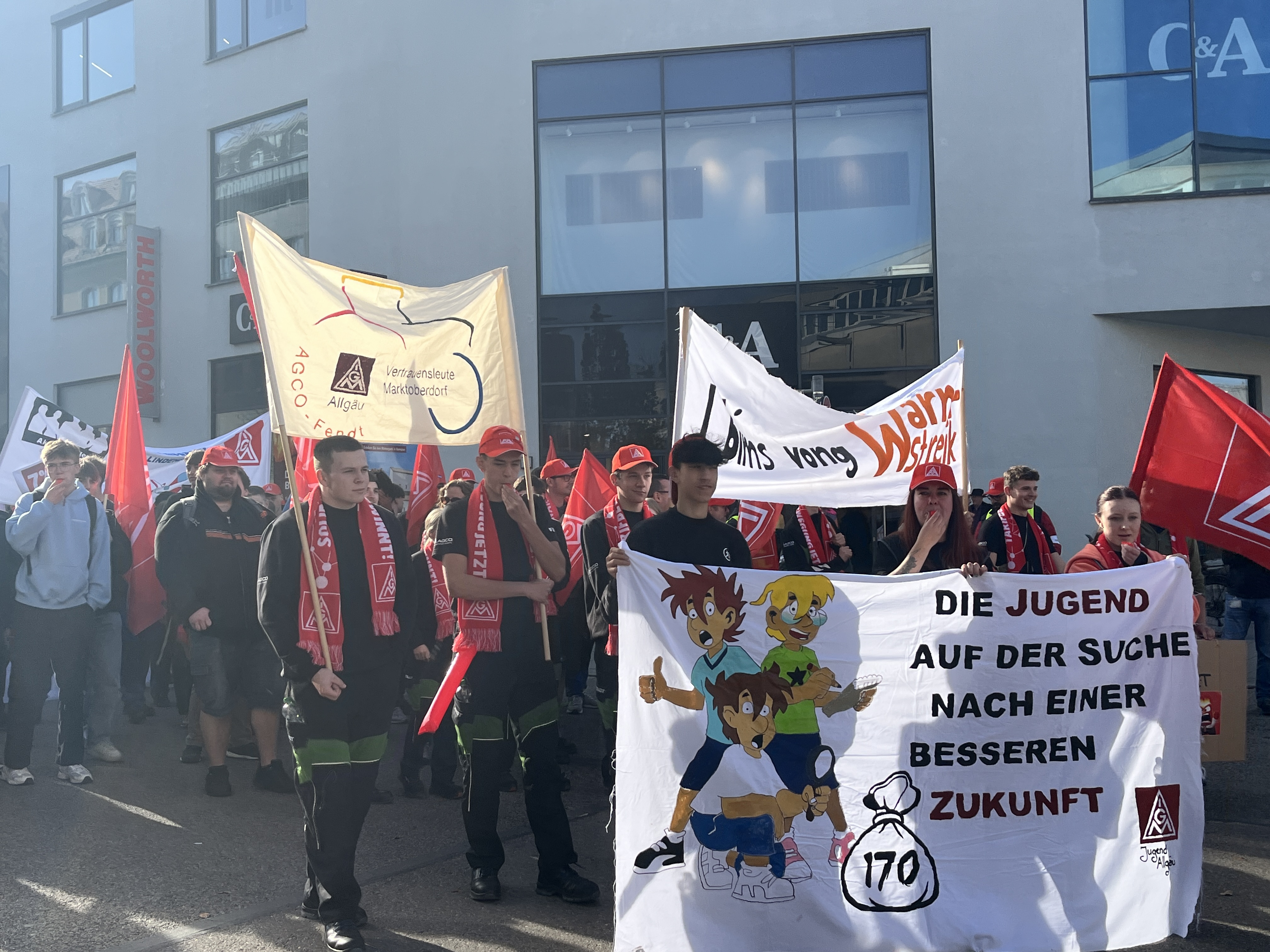 Weitere große Warnstreik-Kundgebungen fanden am Mittwoch bei Airbus in Manching mit 1100 Beschäftigten und in Wackersdorf mit 600 Beschäftigten aus fünf Betrieben statt. Auf dem Siemens-Campus in Erlangen versammelten sich 450 Warnstreikende vorwiegend aus Siemens-Betrieben zu einer gemeinsamen Kundgebung. Bei einem zentralen Azubi-Warnstreik in Kempten zogen 300 Auszubildende aus dem gesamten Allgäu farbenfroh durch die Stadt. In mehreren Betrieben sind bis zum Abend noch weitere Schichten zu Warnstreiks aufgerufen.