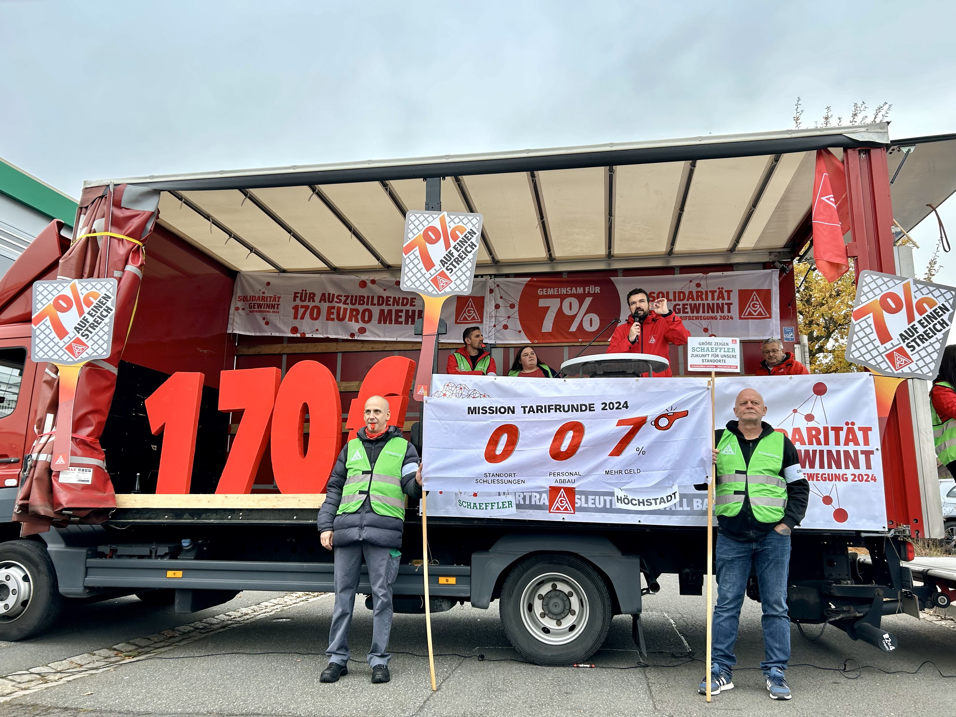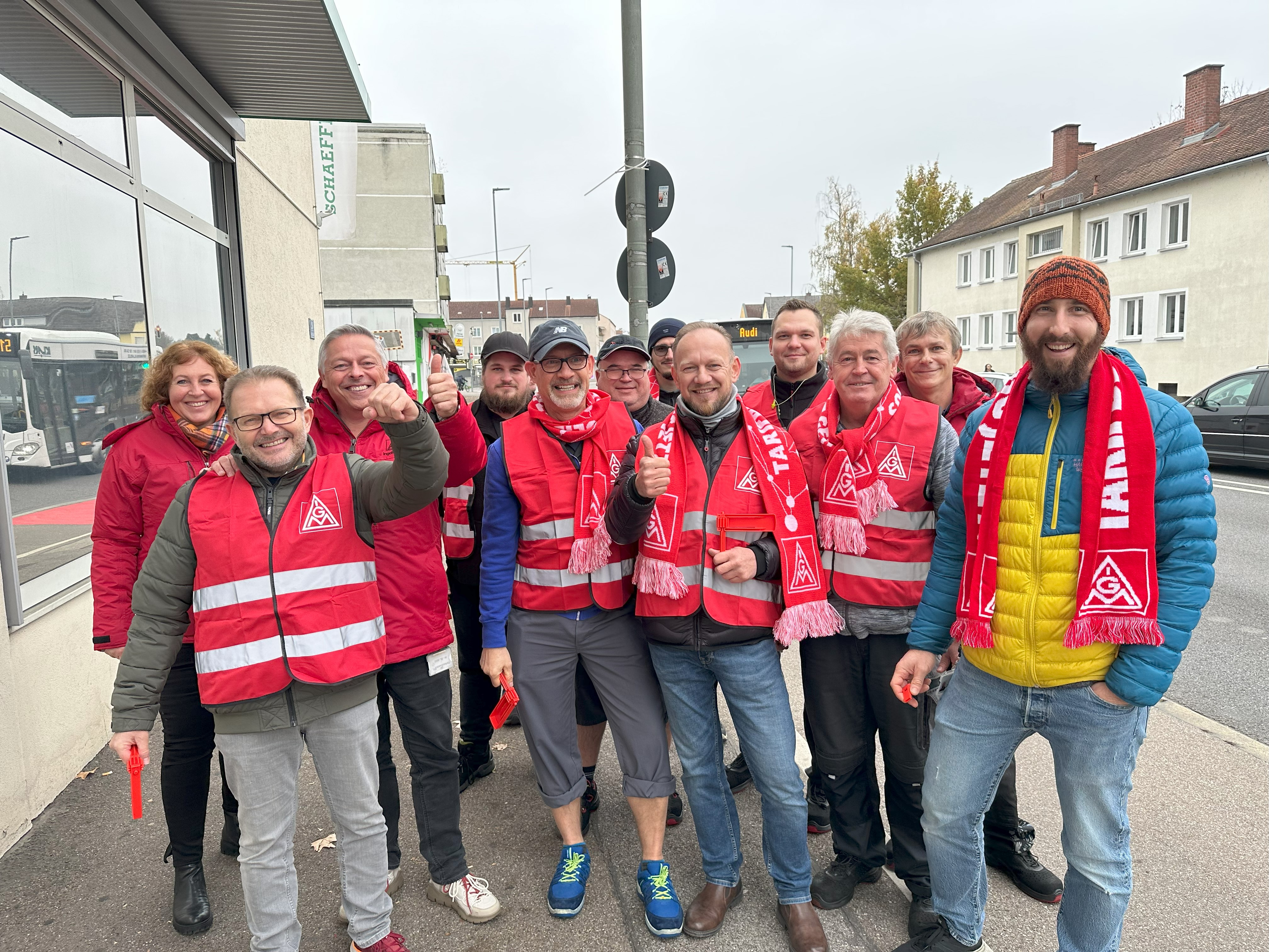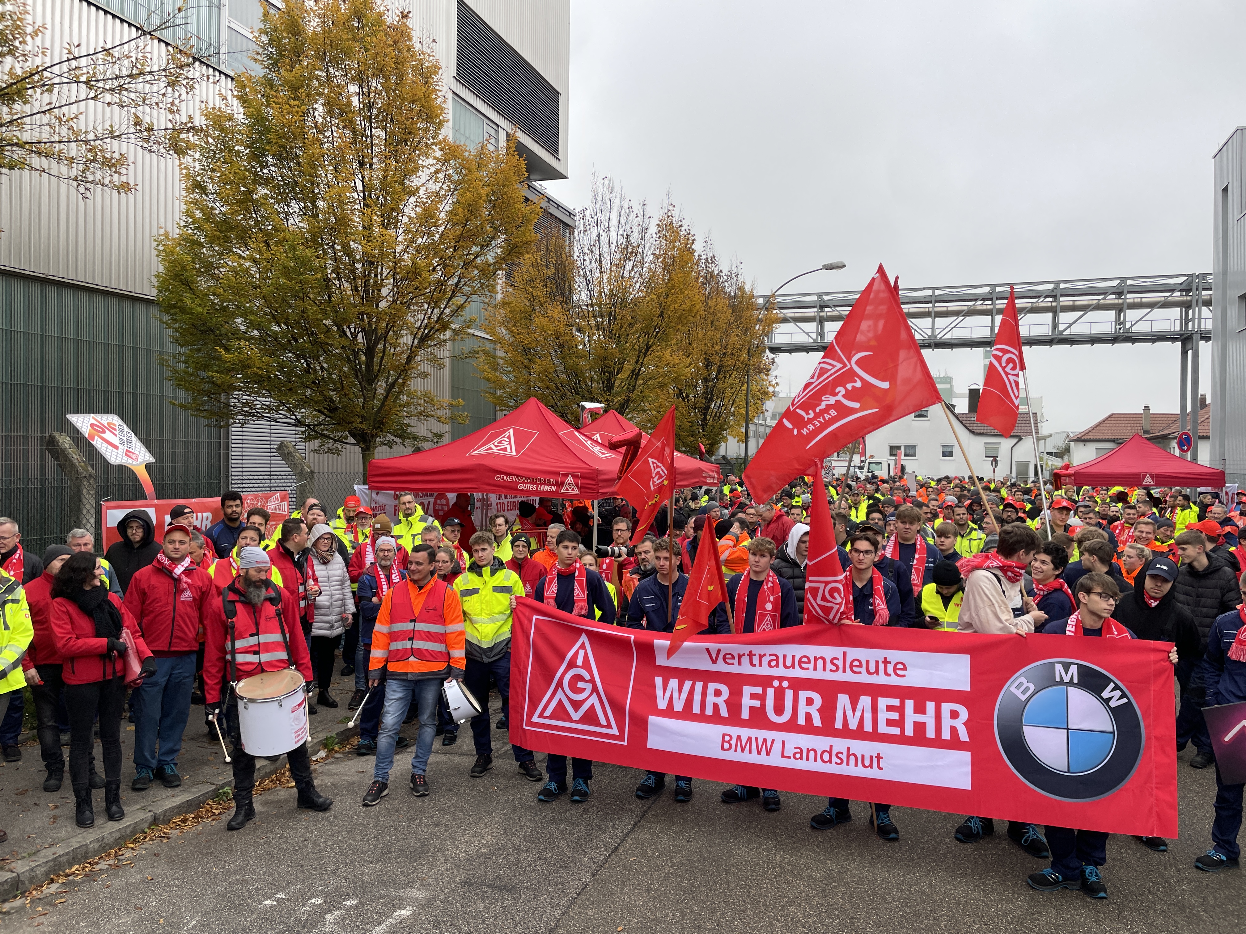 Beschäftigte in 107 bayerischen Betrieben legen Arbeit nieder, 3500 Warnstreikende ziehen durch Nürnberg, Bänder in BMW-Werken Regensburg und Landshut standen still, Audianer greifen in der Nacht ins Geschehen ein. Ott: „Die Unternehmen spüren die Wucht der Solidarität der bayerischen Beschäft