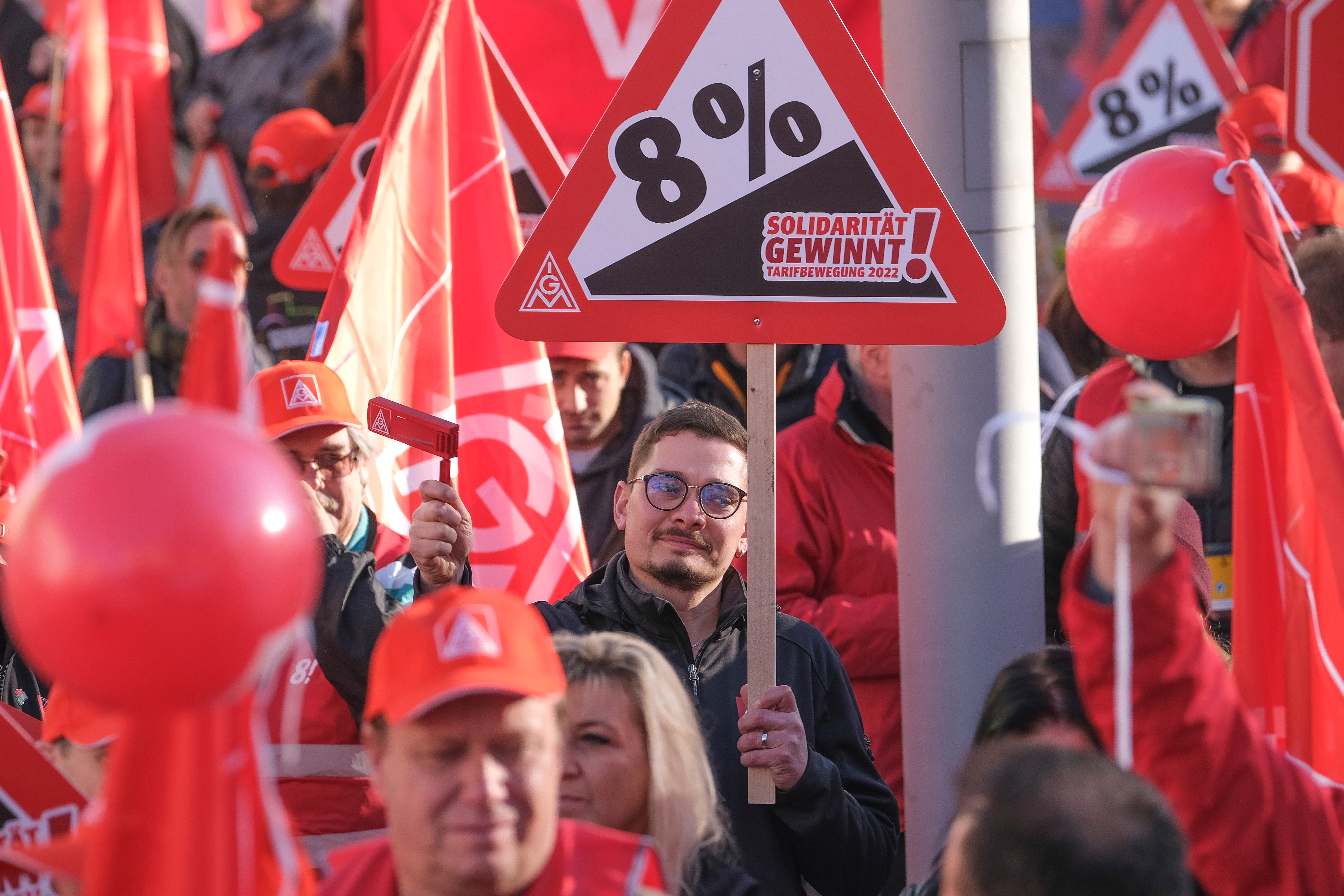 3. Tarifverhandlung Metall & Elektro 2022 in Augsburg. Kundgebung mit 4000 Beschäftigten.