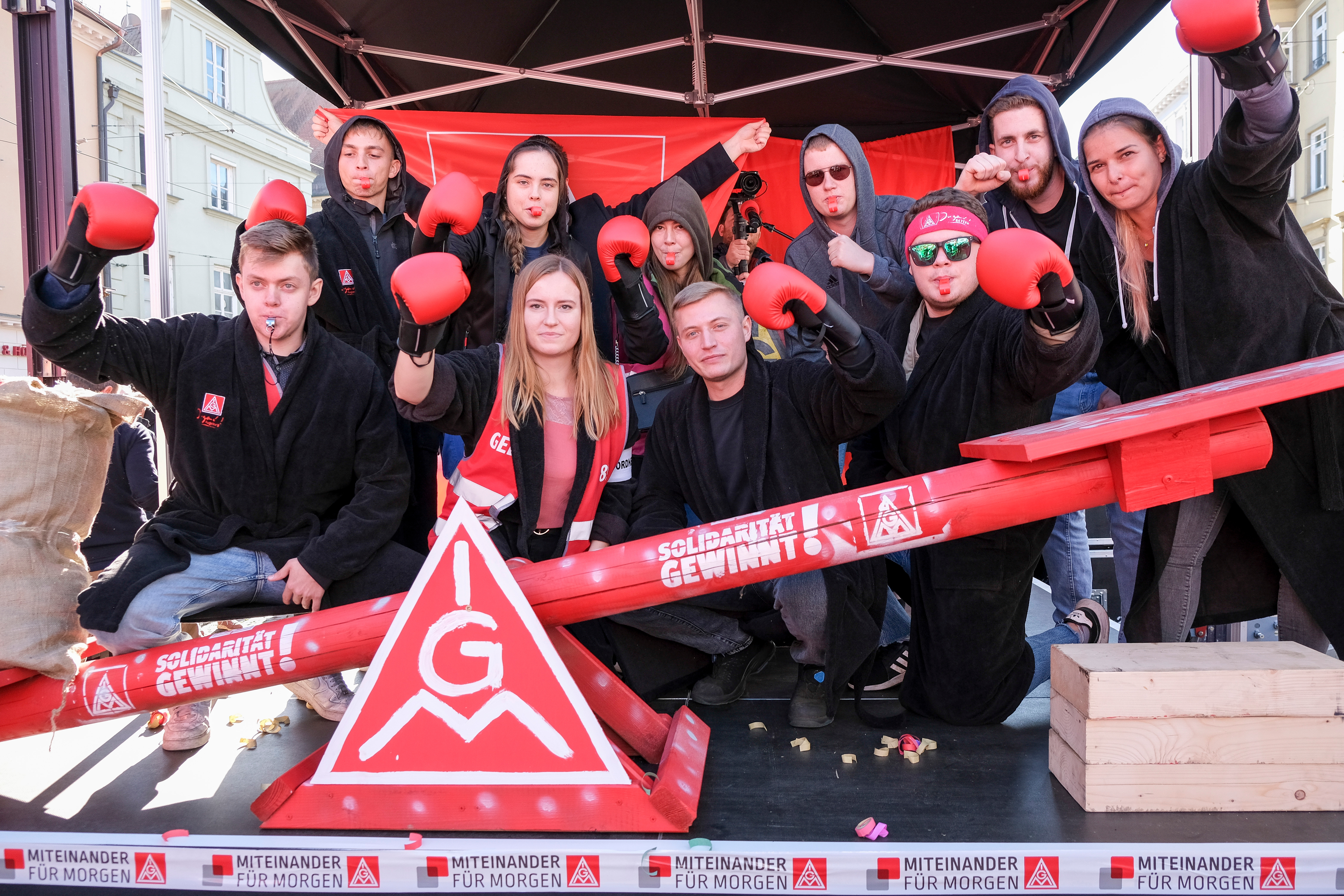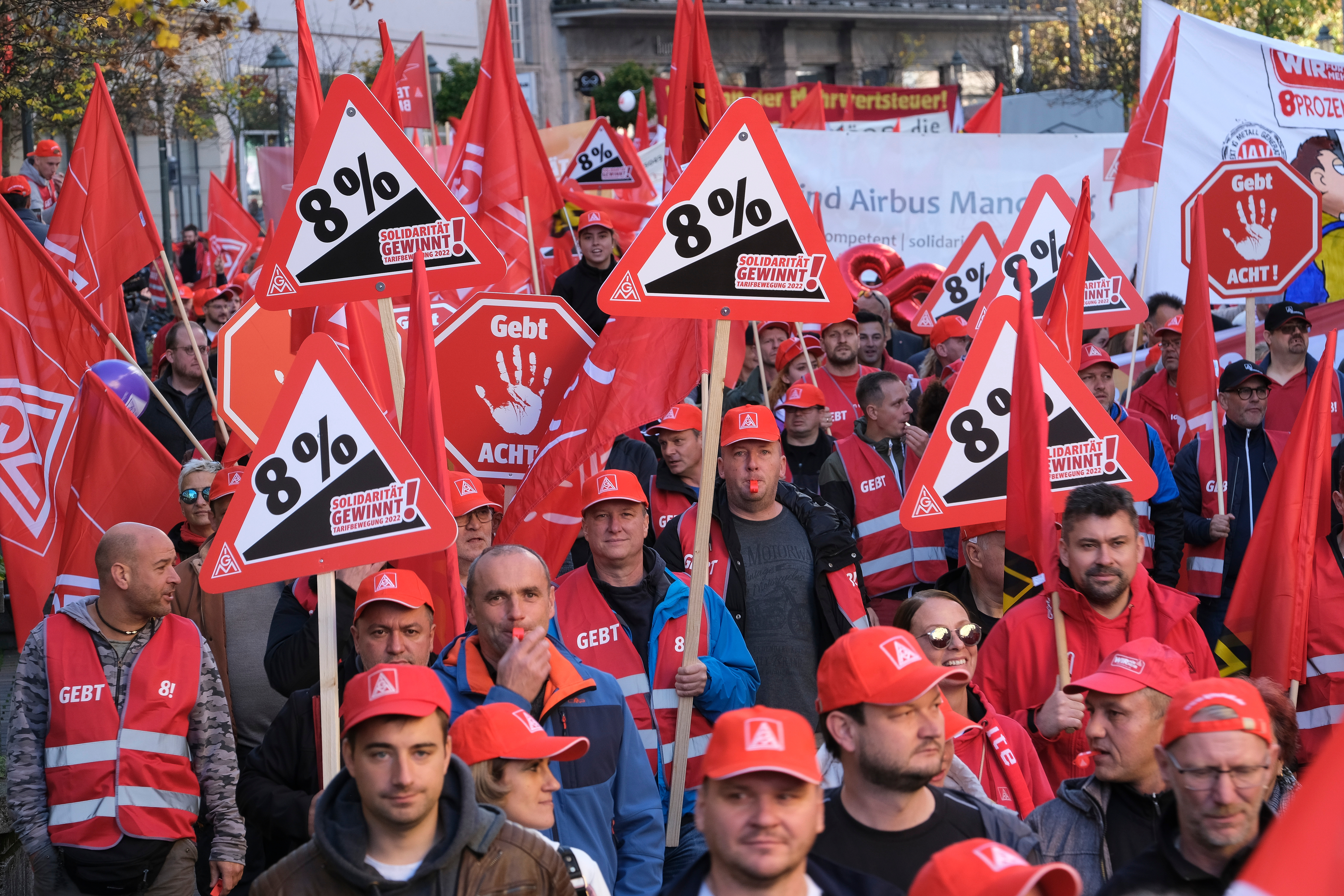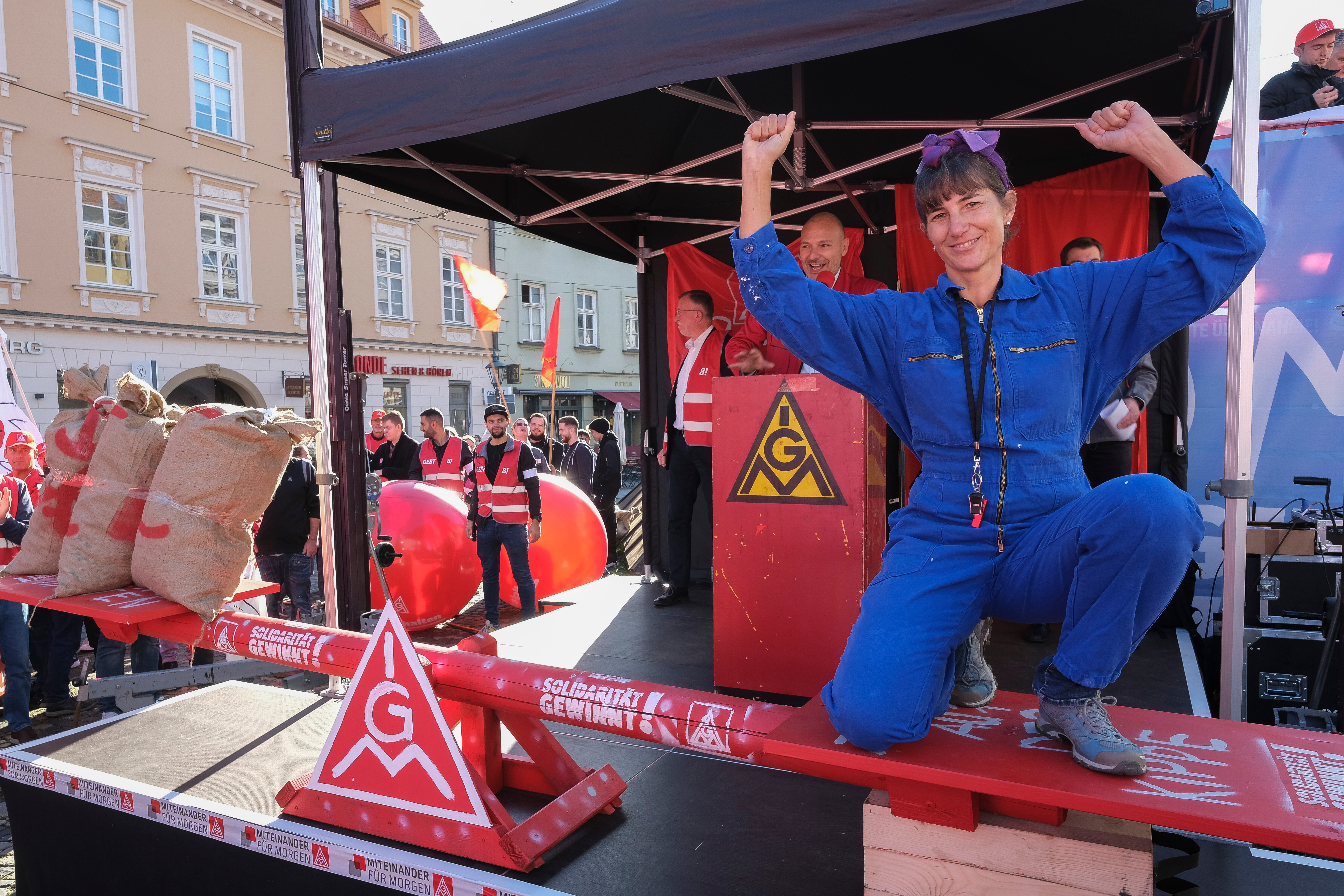 4.000 Beschäftigte haben am 27. Oktober in Augsburg bei einem Demonstrationszug und einer Kundgebung vor der 3. Tarifverhandlung für die Metall- und Elektroindustrie lautstark deutlich gemacht, dass sie bereit sind, für die Durchsetzung ihrer Tarifforderung zu kämpfen. Mit einem viel zu schwachen Angebot haben die Arbeitgeber heute die Chance versäumt, innerhalb der Friedenspflicht einer Lösung näherzukommen. Eine prozentuale Entgelterhöhung hat der Arbeitgeberverband vbm lediglich in Aussicht gestellt – innerhalb einer Laufzeit von 30 Monaten und ohne eine Zahl zu nennen.