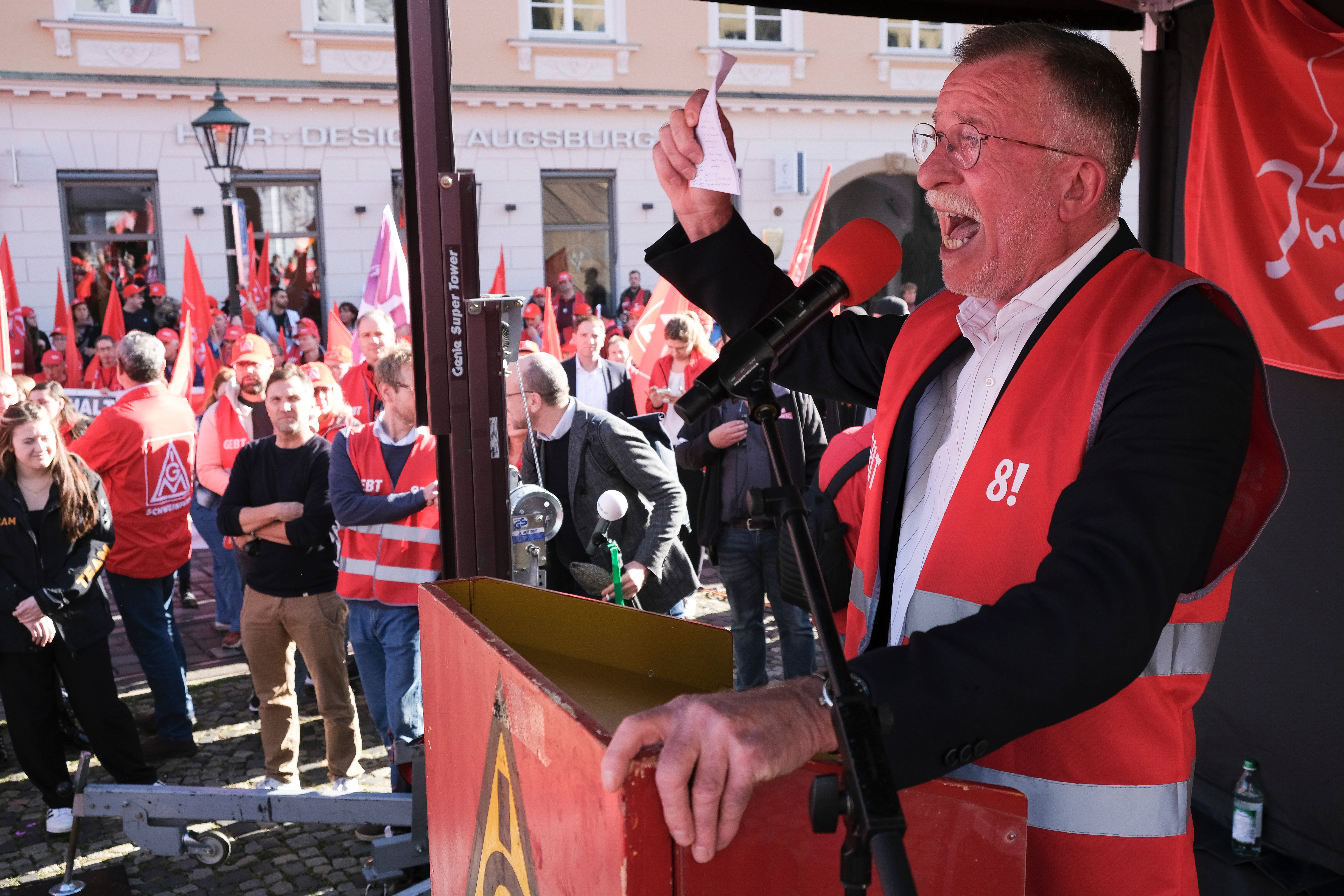 Horn: „Mit diesem Angebot provozieren die Arbeitgeber den Widerstand der Beschäftigten.“ – 4.000 demonstrieren in Augsburg vor der dritten Tarifverhandlung für 8 Prozent mehr Geld.